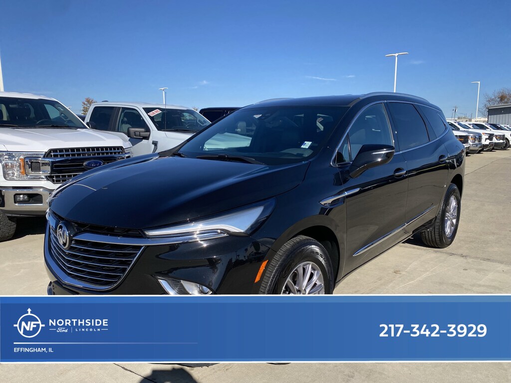 LICENSE PLATE BRACKET FRONT MOUNTING PACKAGE,SEATS FRONT BUCKETS (STD),WHEELS 18 (45.7 CM) ALUMINUM (STD),AUDIO SYSTEM 8 DIAGONAL BUICK INFOTAINMENT SYSTEM WITH NAVIGATION includes multi-touch display AM/FM/SiriusXM stereo Bluetooth streaming audio for music and most phones Android Auto and Apple CarPlay capability for compatible phones advanced voice recognition in-vehicle apps personalized profiles for infotainment and vehicle settings (STD),DARK GALVANIZED WITH EBONY INTERIOR ACCENTS PERFORATED LEATHER-APPOINTED SEATS,TRANSMISSION 9-SPEED AUTOMATIC (STD),PREMIUM PREFERRED EQUIPMENT GROUP Includes Standard Equipment,EBONY TWILIGHT METALLIC Includes Spectra Gray lower exterior accent color.),AXLE 3.49 FINAL DRIVE RATIO,TIRES 255/65R18 SL ALL-SEASON BLACKWALL (STD),ENGINE 3.6L V6 SIDI VVT STOP/START (310 hp [231 kW] @ 6800 rpm 266 lb-ft of torque [359 N-m] @ 2800 rpm) (STD),Mirror Memory,Seat Memory,Rear Parking Aid,Blind Spot Monitor,Lane Departure Warning,Cross-Traffic Alert,Lane Keeping Assist,Front Collision Mitigation,Front Collision Warning,Automatic Highbeams,Keyless Start,All Wheel Drive,Power Steering,ABS,4-Wheel Disc Brakes,Aluminum Wheels,Tires - Front All-Season,Tires - Rear All-Season,Temporary Spare Tire,Rear Spoiler,Heated Mirrors,Power Mirror(s),Auto-Dimming Rearview Mirror,Integrated Turn Signal Mirrors,Power Folding Mirrors,Automatic Highbeams,Automatic Headlights,Privacy Glass,Intermittent Wipers,Intermittent Wipers,Remote Trunk Release,Power Liftgate,Hands-Free Liftgate,AM/FM Stereo,Navigation System,Satellite Radio,MP3 Capability,Bluetooth Connection,Auxiliary Audio Input,Smart Device Integration,Requires Subscription,Satellite Radio,Requires Subscription,Premium Sound System,Bluetooth Connection,Smart Device Integration,WiFi Hotspot,MP3 Capability,Auxiliary Audio Input,Bucket Seats,3rd Row Seat,Bucket Seats,Rear Bucket Seats,Leather Seats,Heated Front Seat(s),Heated Front Seat(s),Cooled Front Seat(s),Heated Rear Seat(s),Power Driver Seat,Power Passenger Seat,Driver Adjustable Lumbar,Seat-Massage,Passenger Adjustable Lumbar,Seat-Massage,3rd Row Seat,Floor Mats,Adjustable Steering Wheel,Leather Steering Wheel,Heated Steering Wheel,Cruise Control,Steering Wheel Audio Controls,Power Windows,Heads-Up Display,Power Door Locks,Keyless Entry,Power Door Locks,Universal Garage Door Opener,Cruise Control,Remote Engine Start,Security System,Security System,Immobilizer,Climate Control,Multi-Zone A/C,A/C,Rear A/C,A/C,Rear A/C,A/C,Rear Defrost,Power Outlet,Driver Vanity Mirror,Passenger Vanity Mirror,Driver Illuminated Vanity Mirror,Passenger Illuminated Visor Mirror,Traction Control,Front Collision Mitigation,Front Collision Warning,Traction Control,Stability Control,Daytime Running Lights,Driver Air Bag,Passenger Air Bag,Front Side Air Bag,Front Head Air Bag,Rear Head Air Bag,Passenger Air Bag Sensor,Telematics,Requires Subscription,Back-Up Camera,Aerial View Display System,Auto-Dimming Rearview Mirror,Back-Up Camera,Rear Parking Aid,Front Collision Warning,Front Collision Mitigation,Cross-Traffic Alert,Blind Spot Monitor,Lane Departure Warning,Lane Keeping Assist,Child Safety Locks,Driver Restriction Features,Tire Pressure Monitor,Telematics,Requires Subscription