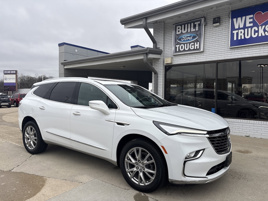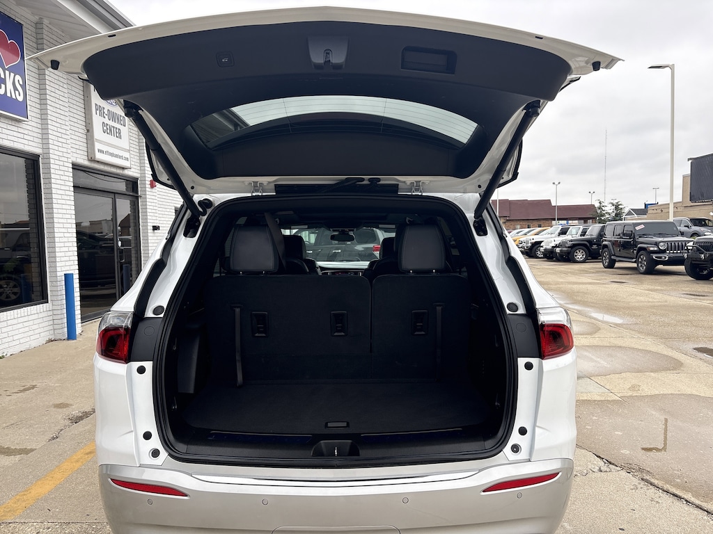SUMMIT WHITE (Includes Satin Nickel lower exterior accent color.),LICENSE PLATE BRACKET FRONT MOUNTING PACKAGE,SEATS FRONT BUCKETS (STD),LPO FLOOR LINER PACKAGE includes (RIA) first and second row All-weather floor liners LPO (RIB) third row All-weather floor liner LPO and (CAV) Integrated cargo liner LPO,EXPERIENCE BUICK PACKAGE includes (C3U) Power-sliding moonroof and (SUB) 20 polished aluminum wheels,LPO INTEGRATED CARGO LINER,LPO ALL-WEATHER FLOOR LINER THIRD ROW,DARK GALVANIZED WITH EBONY INTERIOR ACCENTS PERFORATED LEATHER-APPOINTED SEATS,LPO ALL-WEATHER FLOOR LINERS FIRST AND SECOND ROWS,TIRES P255/55R20 ALL-SEASON BLACKWALL,WHEELS 20 POLISHED ALUMINUM,TRANSMISSION 9-SPEED AUTOMATIC (STD),AXLE 3.49 FINAL DRIVE RATIO,ENGINE 3.6L V6 SIDI VVT STOP/START (310 hp [231 kW] @ 6800 rpm 266 lb-ft of torque [359 N-m] @ 2800 rpm) (STD),AUDIO SYSTEM 8 DIAGONAL BUICK INFOTAINMENT SYSTEM includes multi-touch display AM/FM/SiriusXM stereo Bluetooth streaming audio for music and most phones Android Auto and Apple CarPlay capability for compatible phones advanced voice recognition in-vehicle apps personalized profiles for infotainment and vehicle settings (STD),MOONROOF FRONT POWER SLIDING transparent glass with rear fixed skylight,ESSENCE PREFERRED EQUIPMENT GROUP Includes Standard Equipment,Rear Parking Aid,Blind Spot Monitor,Lane Departure Warning,Cross-Traffic Alert,Lane Keeping Assist,Front Collision Mitigation,Front Collision Warning,Automatic Highbeams,Keyless Start,All Wheel Drive,Power Steering,ABS,4-Wheel Disc Brakes,Aluminum Wheels,Tires - Front All-Season,Tires - Rear All-Season,Temporary Spare Tire,Rear Spoiler,Heated Mirrors,Power Mirror(s),Integrated Turn Signal Mirrors,Automatic Highbeams,Automatic Headlights,Privacy Glass,Intermittent Wipers,Intermittent Wipers,Remote Trunk Release,Power Liftgate,Hands-Free Liftgate,AM/FM Stereo,Satellite Radio,MP3 Capability,Bluetooth Connection,Auxiliary Audio Input,Smart Device Integration,Requires Subscription,Satellite Radio,Requires Subscription,Bluetooth Connection,Smart Device Integration,WiFi Hotspot,MP3 Capability,Auxiliary Audio Input,Bucket Seats,3rd Row Seat,Bucket Seats,Rear Bucket Seats,Leather Seats,Heated Front Seat(s),Power Driver Seat,Power Passenger Seat,Driver Adjustable Lumbar,Passenger Adjustable Lumbar,3rd Row Seat,Floor Mats,Adjustable Steering Wheel,Leather Steering Wheel,Heated Steering Wheel,Cruise Control,Steering Wheel Audio Controls,Power Windows,Tire Pressure Monitor,Power Door Locks,Keyless Entry,Power Door Locks,Universal Garage Door Opener,Cruise Control,Remote Engine Start,Security System,Security System,Immobilizer,Climate Control,Multi-Zone A/C,A/C,Rear A/C,A/C,Rear A/C,A/C,Rear Defrost,Auto-Dimming Rearview Mirror,Driver Vanity Mirror,Passenger Vanity Mirror,Driver Illuminated Vanity Mirror,Passenger Illuminated Visor Mirror,Traction Control,Front Collision Mitigation,Front Collision Warning,Traction Control,Stability Control,Daytime Running Lights,Driver Air Bag,Passenger Air Bag,Front Side Air Bag,Front Head Air Bag,Rear Head Air Bag,Passenger Air Bag Sensor,Telematics,Requires Subscription,Back-Up Camera,Rear Parking Aid,Front Collision Warning,Front Collision Mitigation,Cross-Traffic Alert,Blind Spot Monitor,Lane Departure Warning,Lane Keeping Assist,Child Safety Locks,Driver Restriction Features,Tire Pressure Monitor,Telematics,Requires Subscription