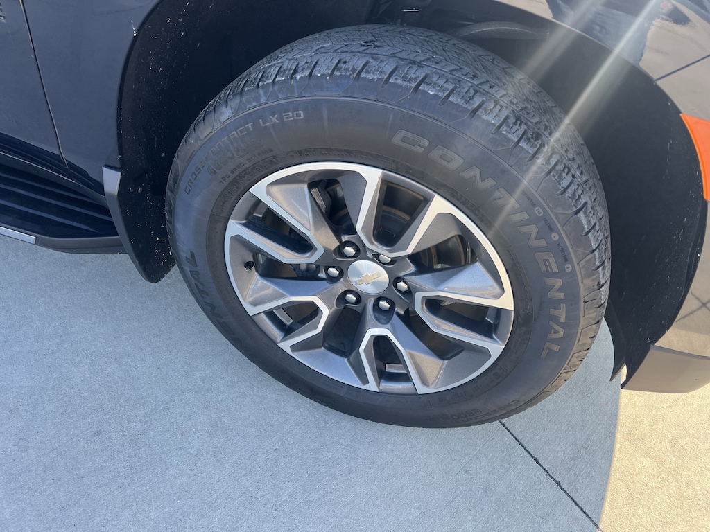 featuring wireless Android Auto and Apple CarPlay capability for compatible phones advanced voice recognition in-vehicle apps personalized profiles for infotainment and vehicle settings (STD),STEERING COLUMN POWER TILT AND TELESCOPIC,ENGINE 5.3L ECOTEC3 V8 with Dynamic Fuel Management Direct Injection and Variable Valve Timing includes aluminum block construction (355 hp [265 kW] @ 5600 rpm 383 lb-ft of torque [518 Nm] @ 4100 rpm) (STD),LPO BLACK ILLUMINATED FRONT BOWTIE EMBLEM (includes Black illuminated front bowtie and Black non-illuminated rear bowtie) (dealer-installed),MIRRORS OUTSIDE HEATED POWER-ADJUSTABLE POWER-FOLDING DRIVER-SIDE AUTO-DIMMING integrated turn signal indicators and puddle lighting,HD SURROUND VISION,SEATS FRONT BUCKET (STD),LPO ILLUMINATED LIFTGATE SILL PLATE (dealer-installed),REAR CROSS TRAFFIC ALERT,LPO ILLUMINATED MIRROR CHEVROLET EMBLEM (dealer-installed),GVWR 7500 LBS. (3402 KG) (STD),TRANSMISSION 10-SPEED AUTOMATIC electronically controlled with overdrive includes Traction Select System including tow/haul (Standard with (L84) 5.3L EcoTec3 V8 engine only.) (STD),LUXURY PACKAGE includes (WPD) Driver Alert Package content (UV2) HD Surround Vision (UKK) Rear Pedestrian Alert (A45) memory settings (DXR) outside heated power-adjustable power-folding body-color mirrors with driver-side auto-dimming and integrated turn signal indicators (N38) power tilt and telescopic steering column (KI3) heated steering wheel (KA6) second row outboard heated seats (ATT) second row power 60/40 split-folding bench seats and (AS8) third row power 60/40 split-folding bench seats Vehicles built prior to December 6 2021 include heated steering wheel. Certain vehicles built on or after December 6 2021 will be forced to include (00G) Not Equipped with Heated Steering Wheel which removes heated steering wheel. Vehicles built prior to March 14 2022 and after April 17 2022 include heated rear outboard seats. Certain vehicles built on or after March 14 2022 through April 17 2022 will be forced to include (00R) Not Equipped with Heated Rear Outboard Seats w,TIRES 275/60R20SL ALL-SEASON BLACKWALL,NOT EQUIPPED WITH STEERING COLUMN LOCK see dealer for details (Beginning with start of regular production October 2021 all vehicles will be forced to include (R7N) Not Equipped with Steering Column Lock which removes Steering Column Lock.),STEERING WHEEL HEATED Vehicles built prior to December 6 2021 and after March 27 2022 include heated steering wheel. Certain vehicles built on or after December 6 2021 through March 27 2022 will be forced to include (00G) Not Equipped with Heated Steering Wheel which removes heated steering wheel. See dealer for details or the window label for the features on a specific vehicle.),SEATS HEATED SECOND ROW OUTBOARD SEATS (Included and only available with (WPL) Luxury Package on vehicles built prior to March 14 2022 and after April 17 2022. Certain vehicles built on or after March 14 2022 through April 17 2022 will be forced to include (00R) Not Equipped with Heated Rear Outboard Seats which removes heated rear outboard seats. See dealer for details or the window label for the features on a specific vehicle. Feature will not function on certain models without later dealer retrofit see dealer for details.),GIDEON/VERY DARK ATMOSPHERE LEATHER-APPOINTED SEATING SURFACES 1ST AND 2ND ROW,LPO BLACK NAMEPLATES (dealer-installed),REAR PEDESTRIAN ALERT,DRIVER ALERT PACKAGE includes (UKC) Lane Change Alert with Side Blind Zone Alert and (UFG) Rear Cross Traffic Alert,LICENSE PLATE FRONT MOUNTING PACKAGE,Locking/Limited Slip Differential,Four Wheel Drive,Tow Hitch,Power Steering,ABS,4-Wheel Disc Brakes,Aluminum Wheels,Tires - Front All-Season,Tires - Rear All-Season,Conventional Spare Tire,Conventional Spare Tire,Luggage Rack,Running Boards/Side Steps,Automatic Highbeams,Heated Mirrors,Power Mirror(s),Privacy Glass,Intermittent Wipers,Variable Speed Intermittent Wipers,Rain Sensing Wipers,Intermittent Wipers,Remote Trunk Release,Power Liftgate,AM/FM Stereo,MP3 Capability,Bluetooth Connection,Auxiliary Audio Input,Smart Device Integration,Premium Sound System,MP3 Capability,Bluetooth Connection,Auxiliary Audio Input,Navigation System,Satellite Radio,Telematics,Requires Subscription,Bluetooth Connection,Bluetooth Connection,Smart Device Integration,WiFi Hotspot,Immobilizer,Keyless Start,Leather Seats,Power Driver Seat,Power Passenger Seat,Driver Adjustable Lumbar,Passenger Adjustable Lumbar,Heated Front Seat(s),Cooled Front Seat(s),Pass-Through Rear Seat,Rear Bench Seat,3rd Row Seat,Floor Mats,Adjustable Steering Wheel,Leather Steering Wheel,Cruise Control,Steering Wheel Audio Controls,Front Collision Warning,Power Door Locks,Keyless Entry,Power Door Locks,Remote Engine Start,Cruise Control,Universal Garage Door Opener,Security System,MP3 Capability,Auxiliary Audio Input,Power Windows,Power Windows,Power Windows,Seat Memory,Climate Control,Multi-Zone A/C,A/C,Rear A/C,A/C,Rear A/C,Rear Defrost,Auto-Dimming Rearview Mirror,Driver Vanity Mirror,Passenger Vanity Mirror,Driver Illuminated Vanity Mirror,Passenger Illuminated Visor Mirror,Front Collision Mitigation,Front Collision Warning,Traction Control,Stability Control,Brake Assist,Daytime Running Lights,Driver Restriction Features,Driver Air Bag,Passenger Air Bag,Front Side Air Bag,Front Head Air Bag,Rear Head Air Bag,Passenger Air Bag Sensor,Telematics,Requires Subscription,Lane Departure Warning,Lane Keeping Assist,Front Collision Mitigation,Front Collision Warning,Automatic Highbeams,Back-Up Camera,Front Collision Mitigation,Lane Departure Warning,Lane Keeping Assist,Front Collision Warning,Child Safety Locks,Tire Pressure Monitor