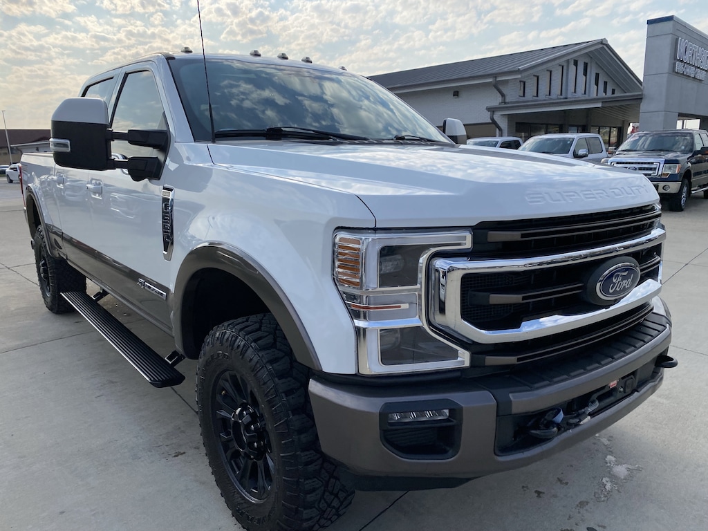 ENGINE: 6.7L 4V OHV POWER STROKE V8 TURBO DIESEL B20 -inc: manual push-button engine-exhaust braking and intelligent oil-life monitor 240 Amp Alternator (67D) 34 Gallon Fuel Tank GVWR: 11 500 lb Payload Package 3.31 Axle Ratio Dual 78-AH 750 CCA Batteries,Four Wheel Drive,Tow Hitch,Power Steering,ABS,4-Wheel Disc Brakes,Brake Assist,Aluminum Wheels,Tires - Front All-Terrain,Tires - Rear All-Terrain,Conventional Spare Tire,Conventional Spare Tire,Tow Hooks,Heated Mirrors,Power Mirror(s),Integrated Turn Signal Mirrors,Power Folding Mirrors,Rear Defrost,Privacy Glass,Intermittent Wipers,Variable Speed Intermittent Wipers,Rain Sensing Wipers,Running Boards/Side Steps,Integrated Tailgate Step,Power Door Locks,Daytime Running Lights,Automatic Headlights,Automatic Highbeams,Fog Lamps,AM/FM Stereo,Premium Sound System,Satellite Radio,Requires Subscription,MP3 Capability,Satellite Radio,HD Radio,Requires Subscription,MP3 Capability,Steering Wheel Audio Controls,Bluetooth Connection,Telematics,Auxiliary Audio Input,Smart Device Integration,Requires Subscription,Bluetooth Connection,Power Driver Seat,Power Passenger Seat,Pass-Through Rear Seat,Leather Seats,Bucket Seats,Heated Front Seat(s),Driver Adjustable Lumbar,Passenger Adjustable Lumbar,Seat Memory,Cooled Front Seat(s),Rear Bench Seat,Pass-Through Rear Seat,Rear Bench Seat,Adjustable Steering Wheel,Trip Computer,Power Windows,WiFi Hotspot,Leather Steering Wheel,Heated Steering Wheel,Keyless Entry,Power Door Locks,Keyless Entry,Power Door Locks,Keyless Start,Universal Garage Door Opener,Cruise Control,Climate Control,Multi-Zone A/C,A/C,Woodgrain Interior Trim,Auto-Dimming Rearview Mirror,Driver Vanity Mirror,Passenger Vanity Mirror,Driver Illuminated Vanity Mirror,Passenger Illuminated Visor Mirror,Floor Mats,Remote Engine Start,Smart Device Integration,Requires Subscription,Smart Device Integration,Navigation System,Mirror Memory,Seat Memory,Remote Engine Start,Keyless Start,Woodgrain Interior Trim,Power Windows,Adjustable Pedals,Power Door Locks,Trip Computer,Mirror Memory,Seat Memory,Immobilizer,Security System,Traction Control,Stability Control,Traction Control,Front Side Air Bag,Telematics,Requires Subscription,Blind Spot Monitor,Cross-Traffic Alert,Front Collision Mitigation,Rear Parking Aid,Lane Departure Warning,Aerial View Display System,Driver Monitoring,Tire Pressure Monitor,Driver Restriction Features,Front Head Air Bag,Rear Head Air Bag,Driver Air Bag,Passenger Air Bag,Child Safety Locks,Back-Up Camera