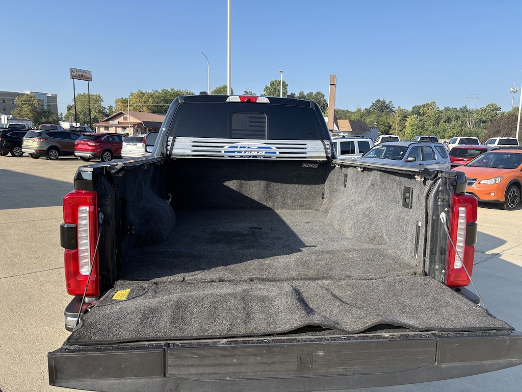 ENGINE: 6.7L HIGH OUTPUT POWER STROKE V8 DIESEL -inc: Turbo diesel B20 manual push-button engine-exhaust braking Operator Commanded Regeneration (OCR) and intelligent oil-life monitor 250 Amp Alternator 34 Gallon Fuel Tank 3.31 Axle Ratio High Capacity 11.6 Axle Upgrade Package increased GCW and upgraded 11.6 axle Note: Salesperson's portfolio or trailer towing guide should be consulted for specific trailer towing or camper limits and corresponding required equipment axle ratios and model availability See supplemental reference for vehicle height consideration Dual 68 AH/65 AGM Batteries,Four Wheel Drive,Tow Hitch,Power Steering,ABS,4-Wheel Disc Brakes,Brake Assist,Aluminum Wheels,Tires - Front All-Terrain,Tires - Rear All-Terrain,Conventional Spare Tire,Tow Hooks,Heated Mirrors,Power Mirror(s),Integrated Turn Signal Mirrors,Power Folding Mirrors,Rear Defrost,Privacy Glass,Intermittent Wipers,Variable Speed Intermittent Wipers,Rain Sensing Wipers,Power Door Locks,Fog Lamps,Automatic Highbeams,Daytime Running Lights,Automatic Headlights,LED Headlights,AM/FM Stereo,Premium Sound System,Satellite Radio,HD Radio,Requires Subscription,MP3 Capability,Satellite Radio,HD Radio,Requires Subscription,Navigation System,MP3 Capability,Steering Wheel Audio Controls,Bluetooth Connection,Telematics,Auxiliary Audio Input,Smart Device Integration,Requires Subscription,Bluetooth Connection,Heated Front Seat(s),Cooled Front Seat(s),Pass-Through Rear Seat,Heated Rear Seat(s),Rear Bench Seat,Adjustable Steering Wheel,Trip Computer,Power Windows,WiFi Hotspot,Leather Steering Wheel,Heated Steering Wheel,Keyless Entry,Power Door Locks,Keyless Entry,Power Door Locks,Keyless Start,Universal Garage Door Opener,Cruise Control,Climate Control,Multi-Zone A/C,A/C,Woodgrain Interior Trim,Power Driver Seat,Power Passenger Seat,Leather Seats,Bucket Seats,Driver Adjustable Lumbar,Passenger Adjustable Lumbar,Heated Rear Seat(s),Auto-Dimming Rearview Mirror,Driver Vanity Mirror,Passenger Vanity Mirror,Driver Illuminated Vanity Mirror,Passenger Illuminated Visor Mirror,Floor Mats,Remote Engine Start,Smart Device Integration,Requires Subscription,Smart Device Integration,Mirror Memory,Seat Memory,Remote Engine Start,Keyless Start,Navigation System,Woodgrain Interior Trim,Power Windows,Power Door Locks,Adjustable Pedals,Trip Computer,Mirror Memory,Seat Memory,Immobilizer,Security System,Traction Control,Stability Control,Traction Control,Front Side Air Bag,Telematics,Requires Subscription,Front Collision Mitigation,Rear Parking Aid,Blind Spot Monitor,Cross-Traffic Alert,Rear Collision Mitigation,Aerial View Display System,Tire Pressure Monitor,Front Head Air Bag,Rear Head Air Bag,Driver Air Bag,Passenger Air Bag,Child Safety Locks,Back-Up Camera