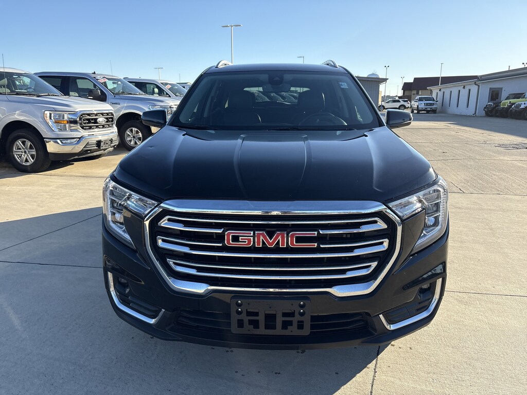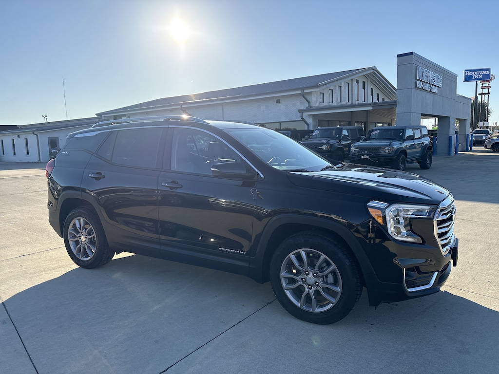 Scores 28 Highway MPG and 23 City MPG! This GMC Terrain boasts a Turbocharged Gas I4 1.5L/ engine powering this Automatic transmission. TRANSMISSION, 9-SPEED AUTOMATIC 9T45, ELECTRONICALLY-CONTROLLED WITH OVERDRIVE, TIRES, P225/60R18 ALL-SEASON BLACKWALL, SLT PREFERRED EQUIPMENT GROUP.